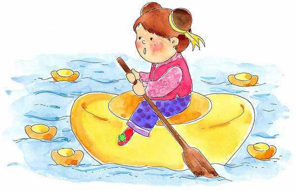 梦中贵人赠元宝,金黄闪闪顺水跑,