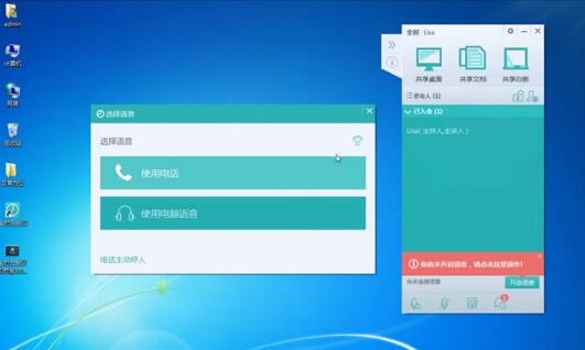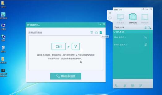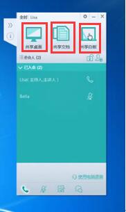 最后一步是会中操作。可以通过共享桌面、共享文档、共享白板演示相关会议资料。