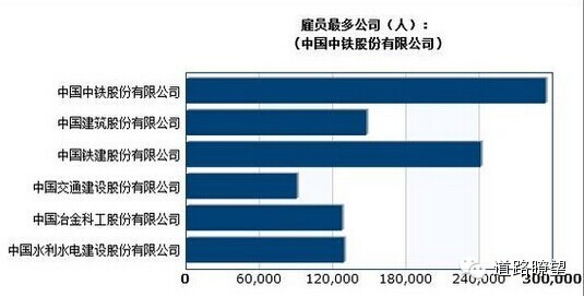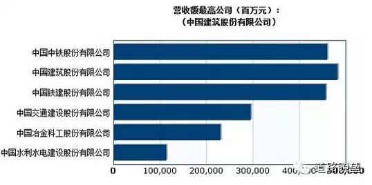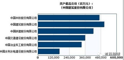 中国中铁294761>中国铁建241621>中国建筑147856>中国中水129564>中国中冶127746>中国交建90674