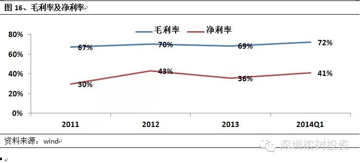 公司御用药房的美誉,给公司产品赋予了较高的品牌溢价。2014年一季度毛利率72%,净利率41%,较2013年有明显上升。http://mmbiz.qpic.cn/mmbiz/TvFBicAOCiacgbA3fXMb5hffwPJQAk2AeUQLYoReO7s89hvQzqFt0Jeh4NfLBK6YcliaC1vWuqg0vmibsvH4lCQTIg/02.2.1安宫牛黄丸稳定增长