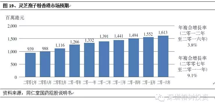 灵芝孢子粉具有扶正固本、增强免疫的功效。同仁堂国药抓住保健品行业发展机遇,2008 年开始生产销售,当年实现收入1200 万港币,至2011 年、2012 年收入分别达到0.76亿和1.08 亿港币,其中大陆销售占比约为94%。由于分拆上市,自12 年11月同仁堂国药一度终止灵芝孢子粉在大陆市场销售,但13年10月已经通过于母集团签订分销框架协议恢复销售,并且销售情况超预期,公司已经于14年5月7日通过特别股东大会上调关联交易上限至14/15/16年的1.85亿港币/2.2亿港币/2.6亿港币,原来14/15年分别为1.1和1.5亿港币。