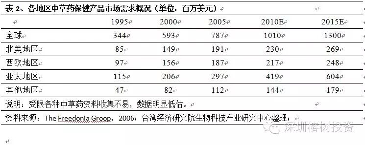 保健品可以划分为中草药、传统滋补类保健品和营养补充剂,中草药、传统滋补类保健品具有调节机体功能,以中医理论为基础、中医配方为依据,用药食同源的中草药或动物提取物作为主要补充原料,如同仁堂阿胶、灵芝孢子粉等。按欧睿报告所述,二零零七年至二零一一年间,保健品是中药出口中增长最快的子行业,出口额达206,100,000美元,占中药产品总出口额约17.1%,较二零一零年增加约115.0%,自二零零七年起计年复合增长率18.3%。预测未来保健品出口额会较二零一一年度上升逾倍,达到约512,900,000美元,自二零一二年起计年复合增长率约为20%。