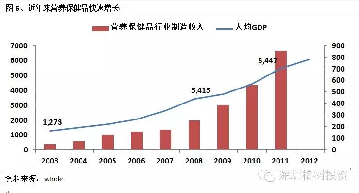 从过去十年国内行业发展来看,我国人均GDP从2001年的1000美元提高到2011年的5400美元。从国际惯例来看,当人均GDP从3000美元向8000美元的跃升阶段中,消费者在保健品消费形态方面将会发生趋势性变化,保健品在消费属性上从可选消费品向必须消费品转变,行业进入一轮快速成长的周期。在上世纪70年代,美国、日本、西欧的保健品行业都经过类似的高增长阶段。最近的例子就是03-10年的巴西,人均GDP从3118美元攀升至10957美元的过程中,巴西保健品行业经历了一轮行业CAGR达22%的高速增长阶段,行业总量从03年的7亿美元增长到2010年的28亿美元。