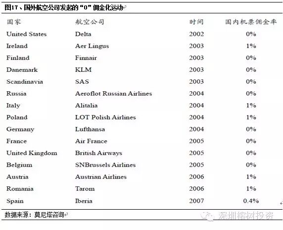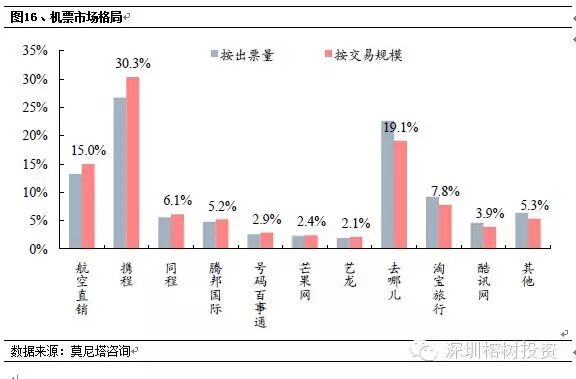 从国内情况看,目前各种OTA分销渠道占绝对主控权,一般大型机票代理商的机票佣金由“3+X+Y”构成,3%作为基础佣金,X是代理商跟航空公司协商的部分,不固定,每个航空公司每个航段每个季节都不一样,波动较大,y是年终后返。目前,携程、艺龙机票佣金率水平在4-5%。未来随着直销占比的逐步提升,机票代销佣金率的下降是个必然趋势,事实上近日国航就宣布将从7月1日起将BSP机票的代理手续费从3%下调为2%,预期其他航空公司也会做跟进。从国外OTA发展历史来看,各类机票代理将会转型走向购买者收取机票服务费/交易费/管理费(主要指企业客户的差旅管理)的模式,服务费将会成为OTA