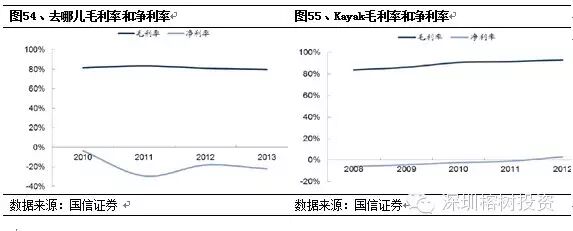 2013年去哪儿归属于股东的净利润为亏损1.87亿元,相较2012年亏损9110万元亏损扩大,主要是因为去哪儿为争夺无线端市场而付出了高昂的代价。Kayak在经历了连续4年的亏损后,2012年已实现盈利,当年实现归属于股东的净利润为923.7万元。去哪儿的一个重要特色是网罗众多的中小OTA,自建TTS平台,积累流量从而与大OTA竞争。既为OTA导流量,又是其竞争对手。短期内,机票和酒店官网直销力度的加大将会给去哪儿带来许多流量,但从长期来看,机票和酒店预订市场集中度的提升将会弱化比价网站的效用,而且去哪儿作为一个搜索引擎,佣金率很低,未来比价意义最大的在于差异化最大的旅游度假市场。事实上,去哪儿已经开始通过布局酒店直销合作,开始向OTA转型。