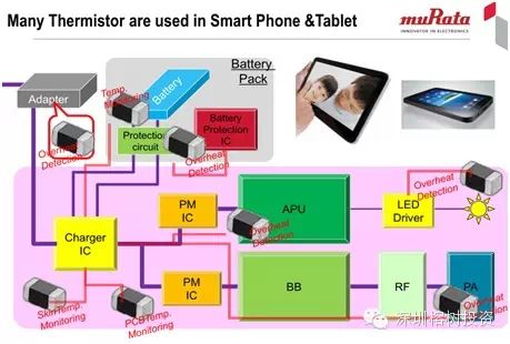 3). 检测智能手机/平板电脑机体部分的温度,检测穿戴式设备机体表面温度,用于器件、模块的过热保护,电池的充电保护。