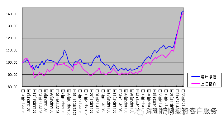 摘要: "榕树文明复兴一期"截至2014年12月26日净值142.36,净值在指数大幅波动的一周里再创历史新高,较2014年12月19日净值上涨1.34。过去一周上证指数波幅达6.23%。