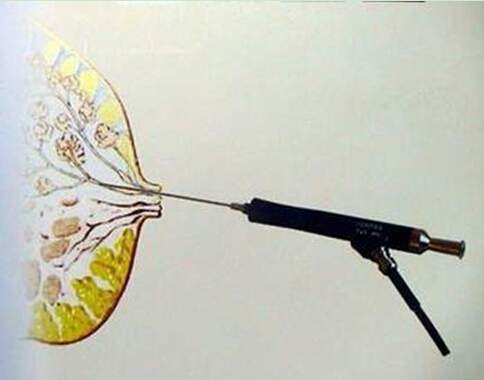 乳管镜是一种新的诊断方法,既快又准确地诊治乳头溢液。乳管镜是一种微型内镜,其直径不足1毫米,通过患者乳头溢液的小孔即可将其插入乳管,医生借助于乳管镜,可以一目了然地观察乳管内病变情况,如果属导管扩张、乳腺导管炎症患者,经纤维导管镜局部冲洗后,即可终止乳头溢液;而对镜下可疑的病变部位,马上可进行细胞涂片或活检。该技术操作简单,安全,病人痛苦少,是一项经济、有效的临床诊治技术。
