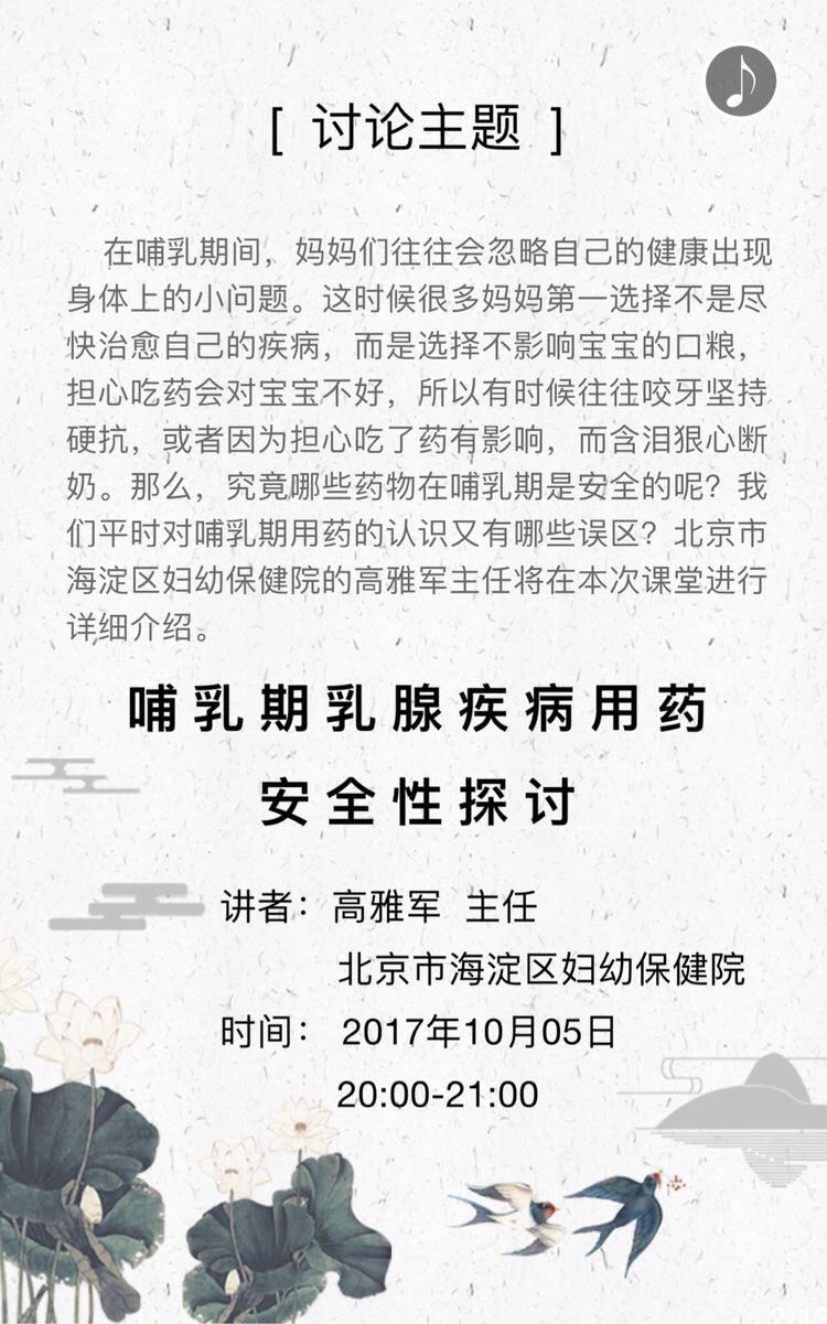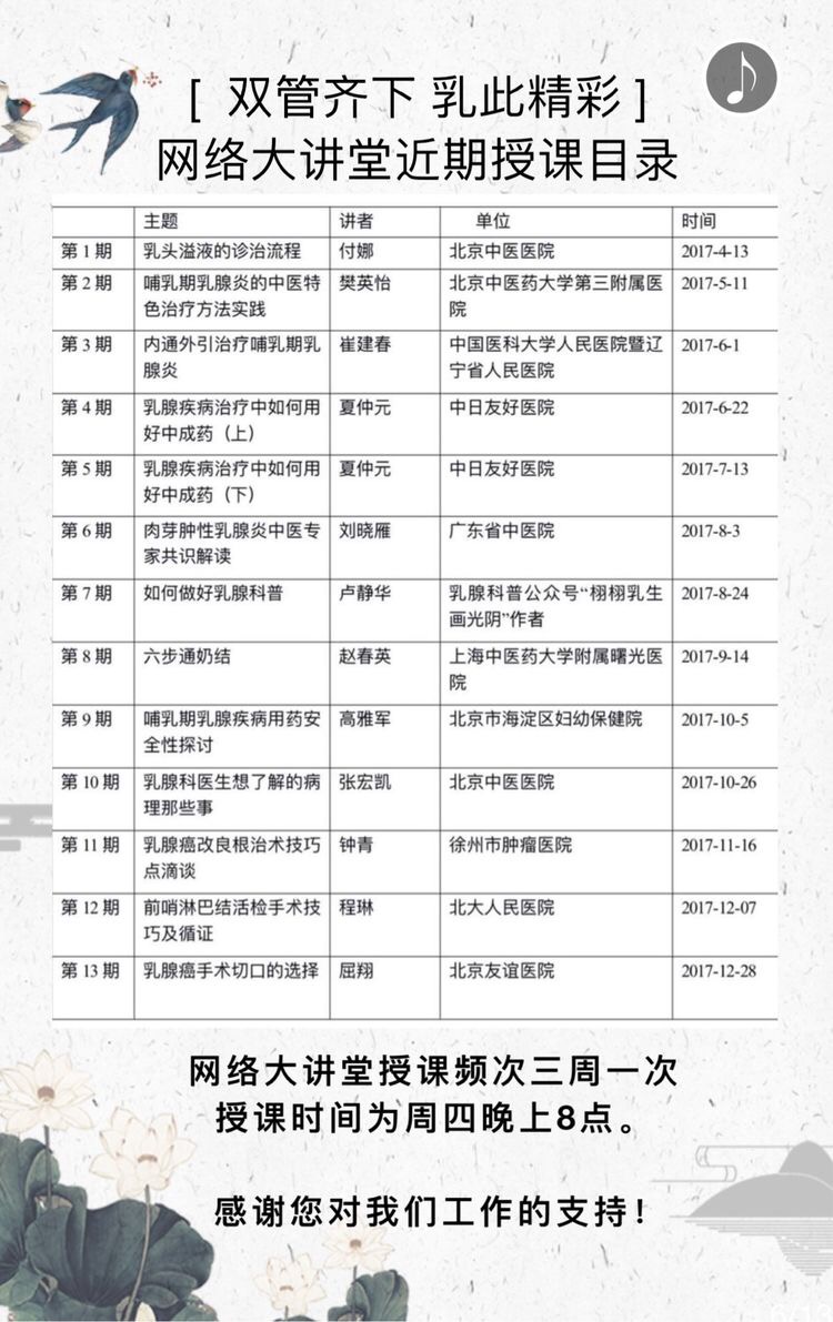 中西医结合乳管内病变下周四晚八点继续开讲,第九期聚焦哺乳期乳腺疾病用药安全性。课程免费,限医务人员。