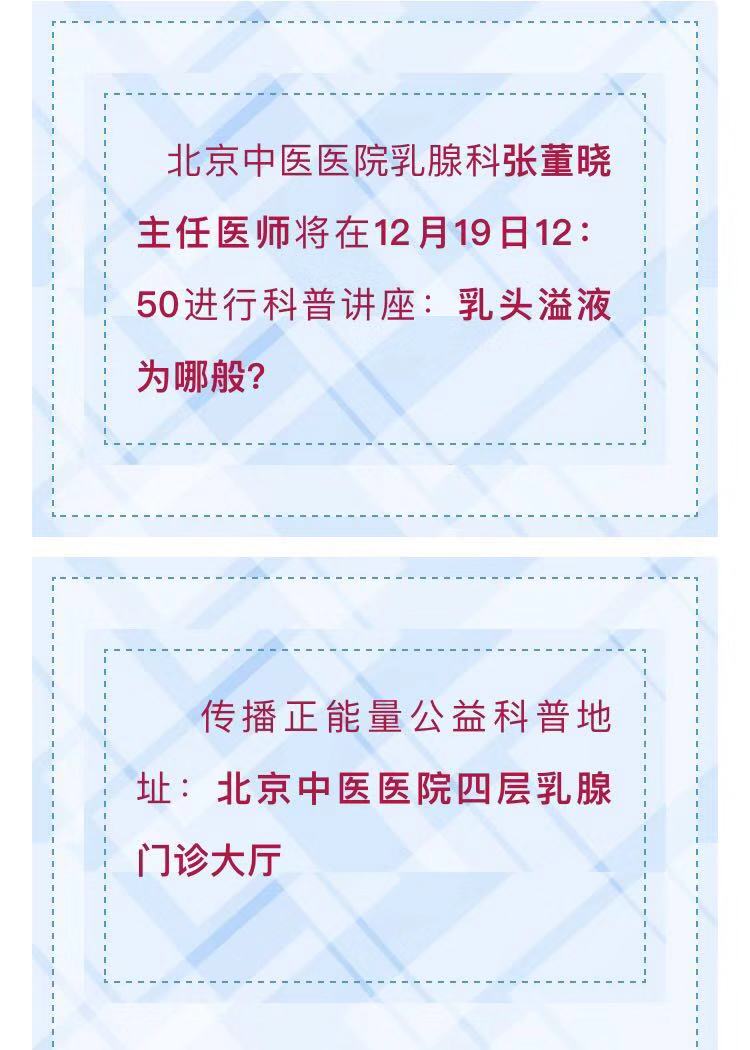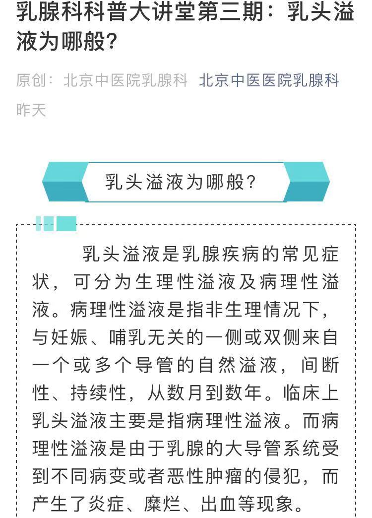 今天中午,科普讲座:为什麽会出现乳头溢液?欢迎交流