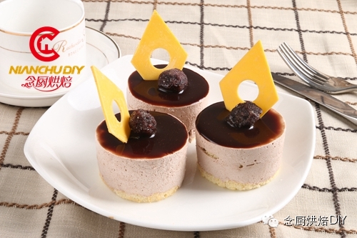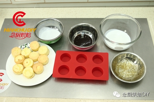 主料:鲜奶油125g、牛奶63g、巧克力酱63g、明胶片1.5片或鱼胶粉8g、戚风蛋糕片(戚风蛋糕做法请回复“戚风”查询)