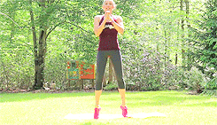 动作三 分腿深蹲跳 15个,这个动作是深蹲的一个变形,双脚并立,分开跳跃并下蹲到最低点,还原。如果膝盖不好,不能跳跃过多,把这个动作改成普通的徒手深蹲动作就可以。