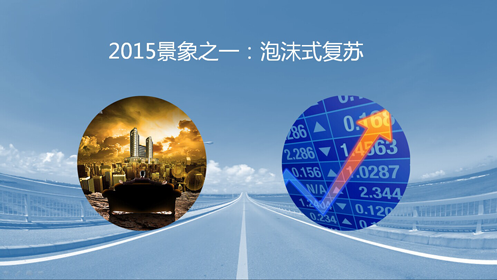 2014年三季度后,股市发生大幅度的波动,并在第四季度进入结构性牛市。与此同时,由于限购限贷政策的放松,房地产市场开始复苏。这两大与泡沫经济息息相关的元素,几乎在同一时间搓出泡沫。让我们不得不怀疑2015年的经济是否会产生泡沫式的复苏。