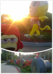 在南湖公园,我看到了举办世锦赛结束后还没来得及撤走的吉祥物,相比之下,我对自己的美貌又增添了几分自信。