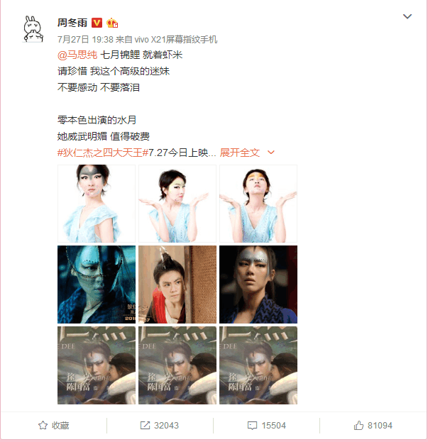 一时间周冬雨和马思纯在微博上的互动就上了热搜,翻遍周冬雨的微博,你会发现满满的全是马思纯,这才是真爱的嘛。在大家印象中马思纯还算是一个比较开明的女孩子,所以相信这失恋对其而言也不算是走不出来的痛。就像她在《狄仁杰之四大天王》里受了很严重的伤却拒绝吃苦死了的药,林更新说,你吃了那么多苦都不怕,这点苦也不算什么!