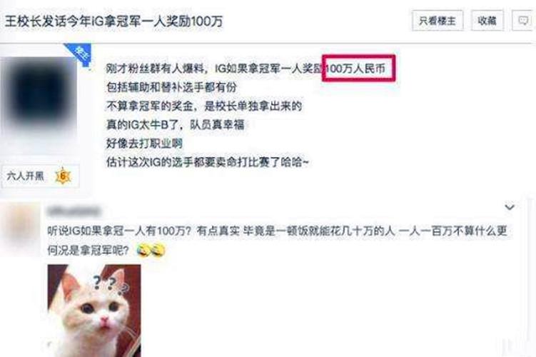 本来王思聪出手很阔绰,这次根式有消息称IG夺冠之后王思聪给他们的奖金是没人一百万,感觉这消息还是可靠的,毕竟王思聪在KTV随便玩一晚上就是几十万的消费。