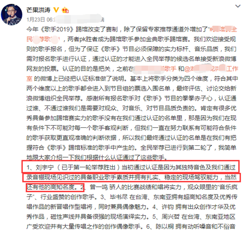 因为这样的投票在之前的时候,就一直存在着“刷票”的嫌疑,因此在面对这样情况的时候,节目组额也是做出了紧急的英规措施,导演洪涛在微博上面,也发千字文,来说明这样的事情,也作出了相应的评价。