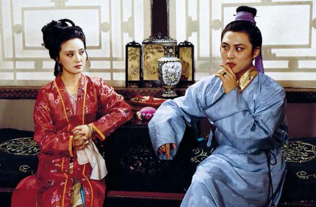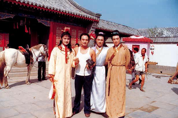 饰演探春的东方闻樱反串宝玉时的剧照,欧阳奋强到剧组之前,晓旭他们排演小品,都是东方反串宝玉与他们搭戏。