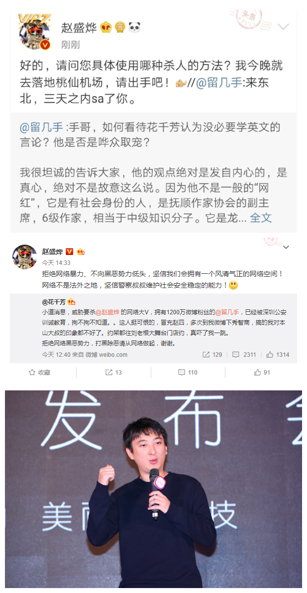 网络就是这样,可以迅速形成热点,就在花千芳与王思聪对骂期间,有一个人横空插入,他就是拥有1200万粉丝的网红“留几手”,其实这三位都是东北人,王思聪是辽宁大连人,花千芳是辽宁抚顺人,留几手是吉林人。