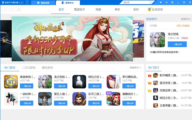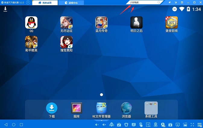2、安装完成并打开,在天天模拟器的搜索框搜索“少女枪战”,然后点击下载,安装到天天模拟器内。