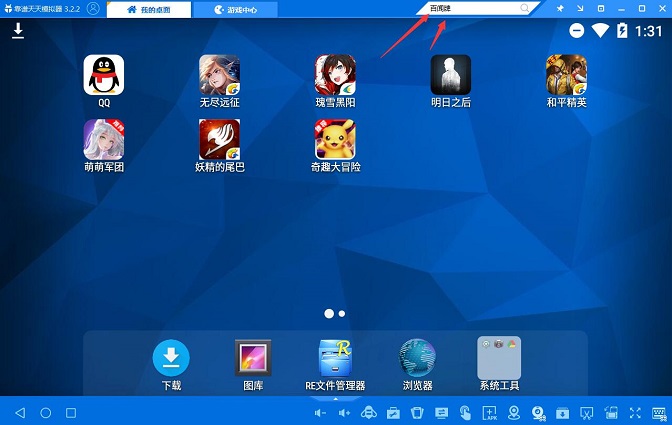 2、安装完成并打开,在天天模拟器的搜索框搜索“百闻牌”,然后点击下载,安装到天天模拟器内。