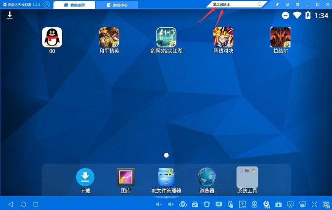 2、安装完成并打开,在天天模拟器的搜索框搜索“星之召唤士”,然后点击下载,安装到天天模拟器内。