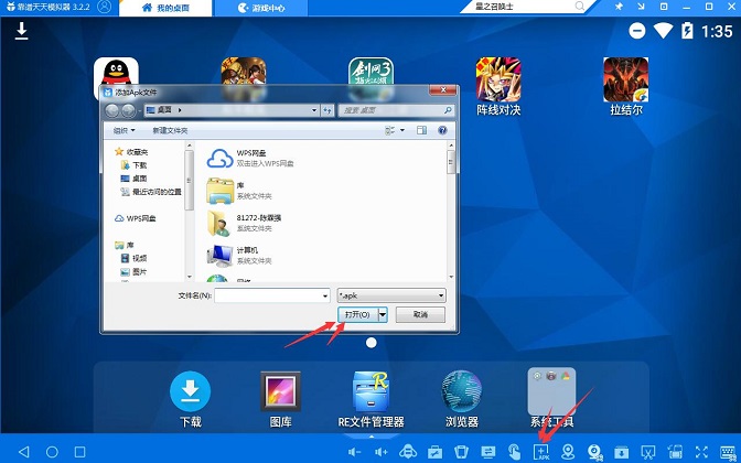 3、过一会儿你就可以看到已经安装好的星之召唤士游戏图标在天天模拟器我的桌面上。若天天模拟器没找到星之召唤士游戏,就在天天模拟器我的桌面界面,点击一下右下角apk按钮,到星之召唤士手游官网下一个游戏安装包添加到天天模拟器里面就可以啦!