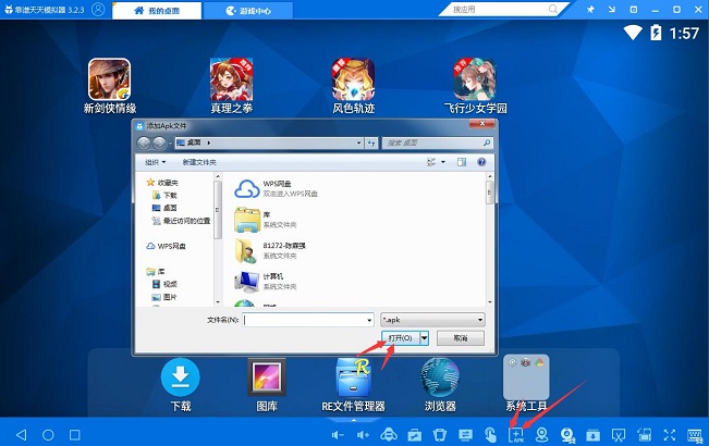 3、过一会儿你就可以看到已经安装好的精灵食肆游戏图标在天天模拟器我的桌面上。若天天模拟器没找到精灵食肆游戏,就在天天模拟器我的桌面界面,点击一下右下角apk按钮,到精灵食肆手游官网下一个游戏安装包添加到天天模拟器里面就可以啦!