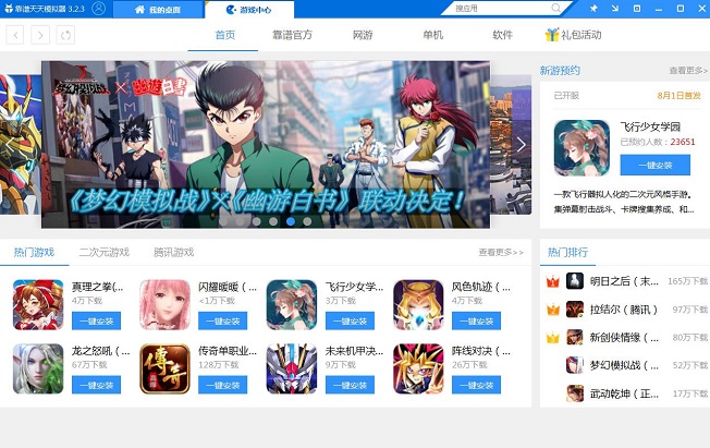 2、安装完成并打开,在天天模拟器的搜索框搜索“黑潮之上”,然后点击下载,安装到模拟器内。