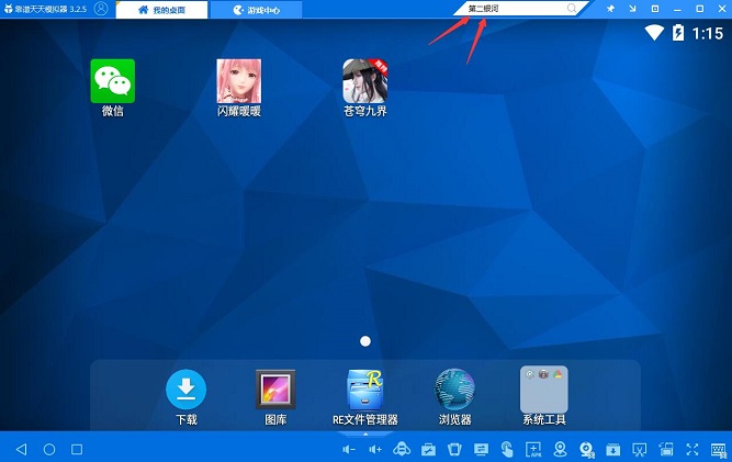 3、过一会儿你就可以看到已经安装好的第二银河游戏图标在天天模拟器我的桌面上。若天天模拟器没找到第二银河游戏,就在天天模拟器我的桌面界面,点击一下右下角apk按钮,到第二银河手游官网下一个游戏安装包添加到天天模拟器里面就可以啦!