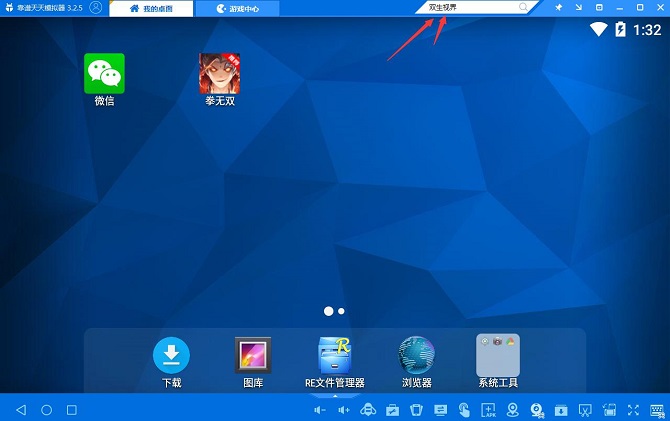 2、安装完成并打开,在天天模拟器的搜索框搜索“双生视界”,然后点击下载,安装到天天模拟器内。