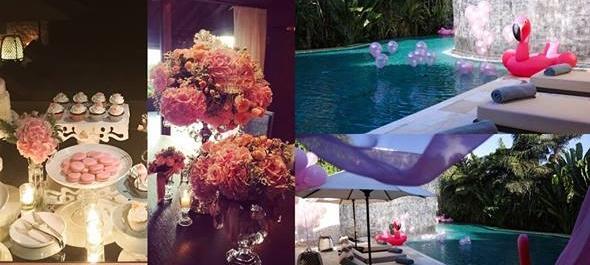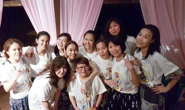 林心如在脸书上载婚礼举办地现场照,粉色的气球置放在室外的水面上,室内的花海、马卡龙和蛋糕也十分抢镜,整个现场看起来十分浪漫。林心如还在上载一张合影,并写道:“”Beautiful night....love u all....my lovely sisters。”