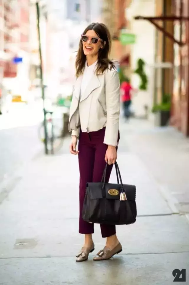 无论是什么版形的裤子,九分长度的显腿长效果都一流,九分裤刚好露出纤细脚踝,也是显瘦的黄金法则。