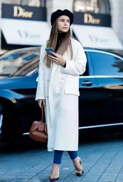 即使小个子女生在选择这种超长款外套时,把纤瘦的脚踝露出来,也不会因为穿长大衣显得压个儿。
