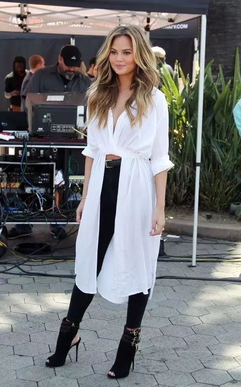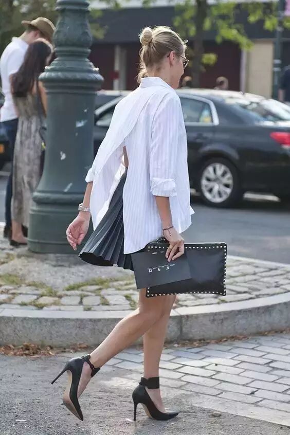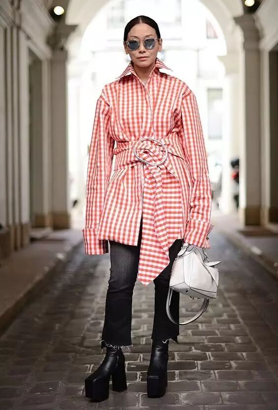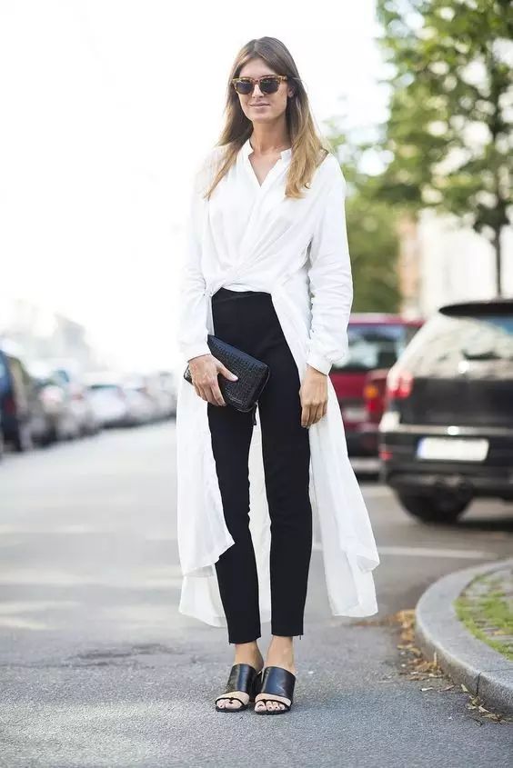 如果你家里有不太好搭配的衬衫裙~那么就打个结吧!搭配一条紧身裤,走在街上想不看你都难!▼
