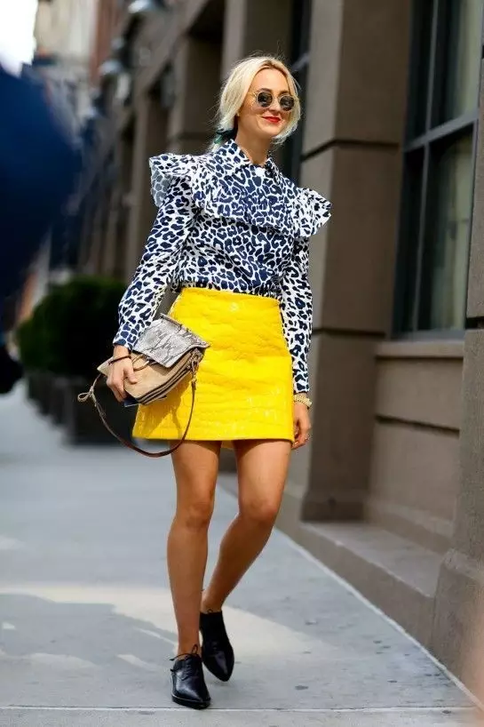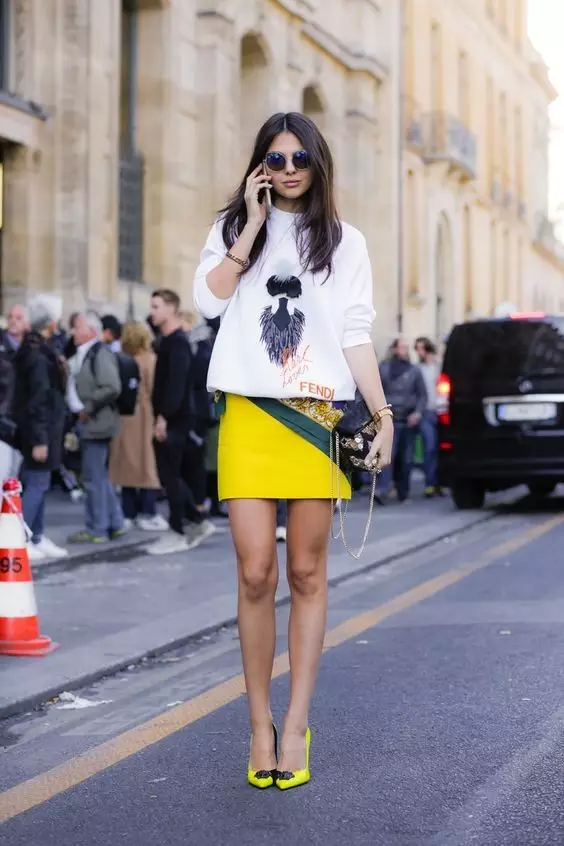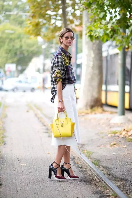 明媚黄半裙搭配衬衫或者紧身针织衫都让优雅中带有青春的气息~▼