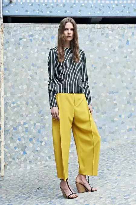 裤子的款式也可以挑战明媚黄噢~最流行的阔腿裤再适合不过~记得把上衣别进裤子里才会显得腿又长又直!▼