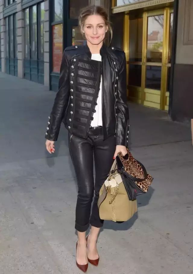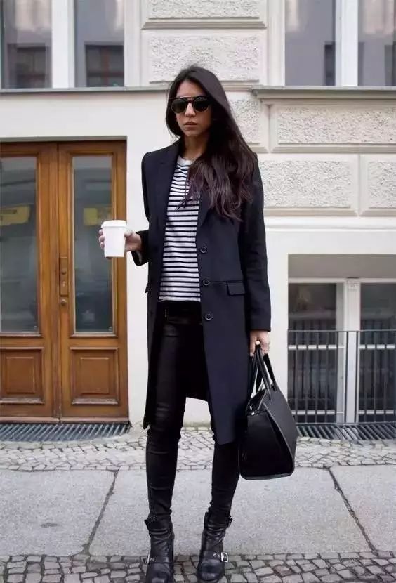 黑色外套加皮裤的组合很酷炫,十分干练有气场。▼