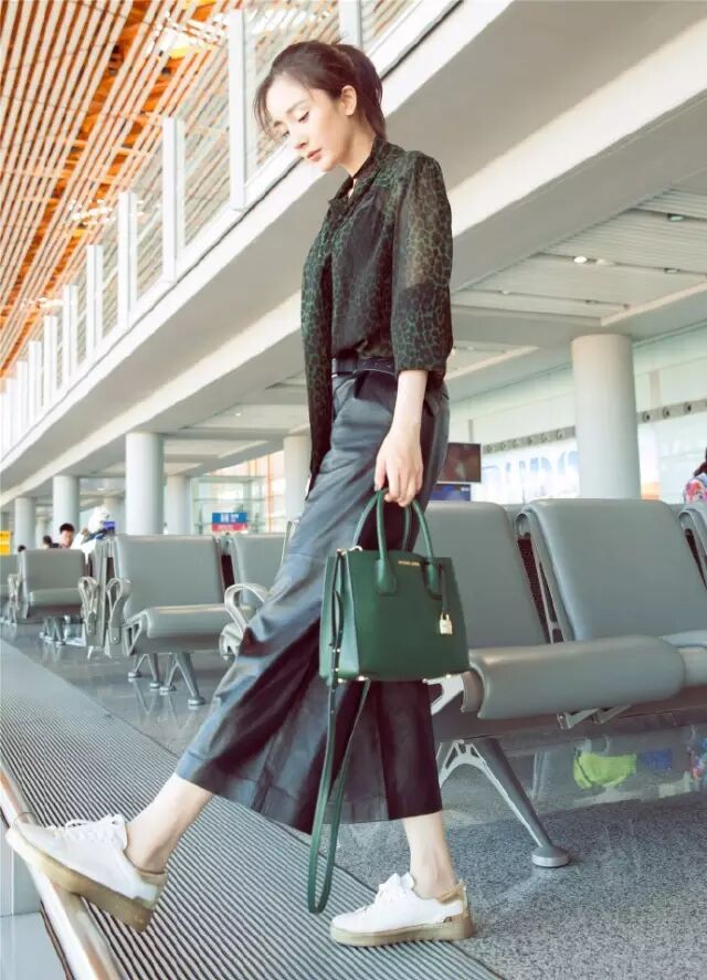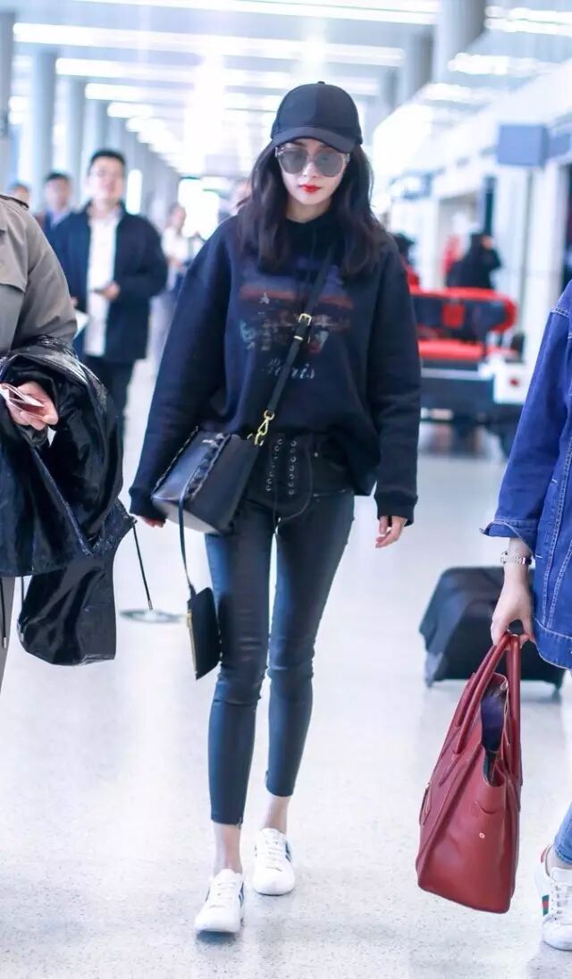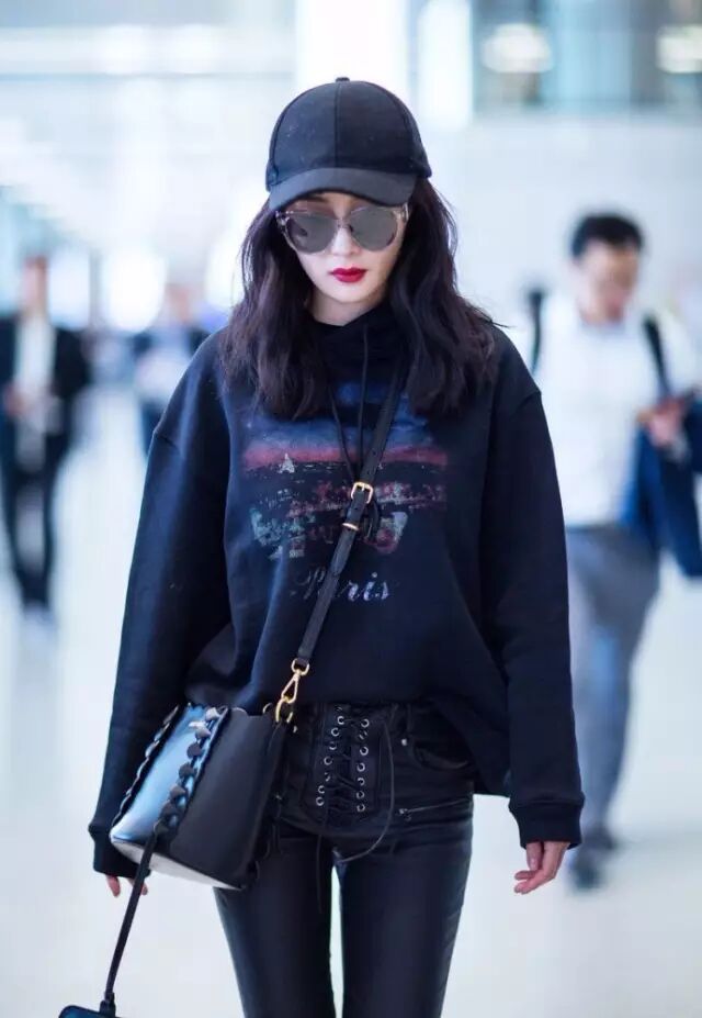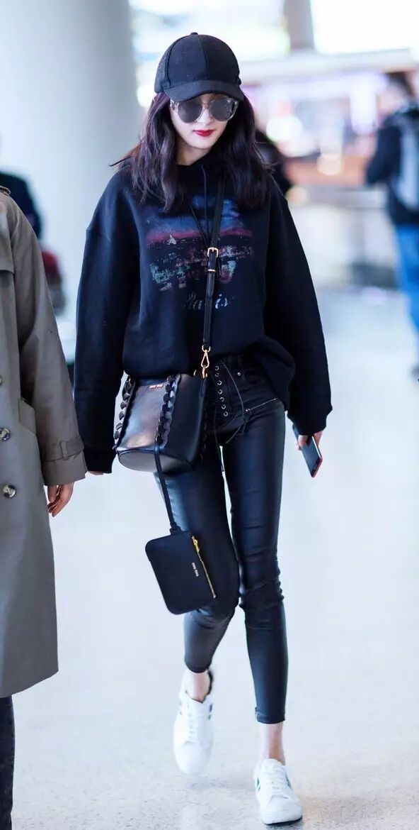 大幂幂近日现身机场,黑色卫衣搭配绑带紧身皮裤时髦无比,选择露出脚踝的长度很好的拉长了比例,搭配小白鞋也很有活力。▼