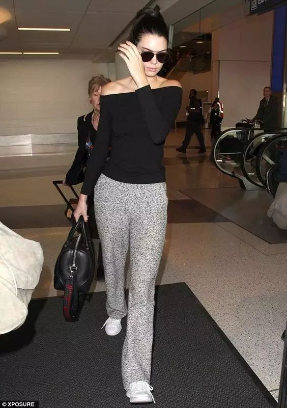 Kendall也很喜欢穿露肩的针织衫~但她更偏爱紧身的款式,能把身材线条勾勒得很挺拔很纤细~搭配牛仔裤紧身裤和靴子就是一套街头时髦风~▼