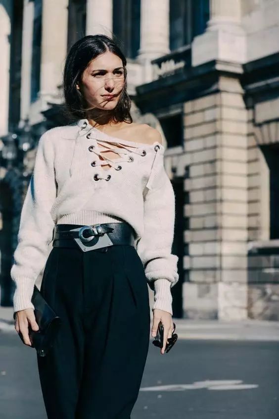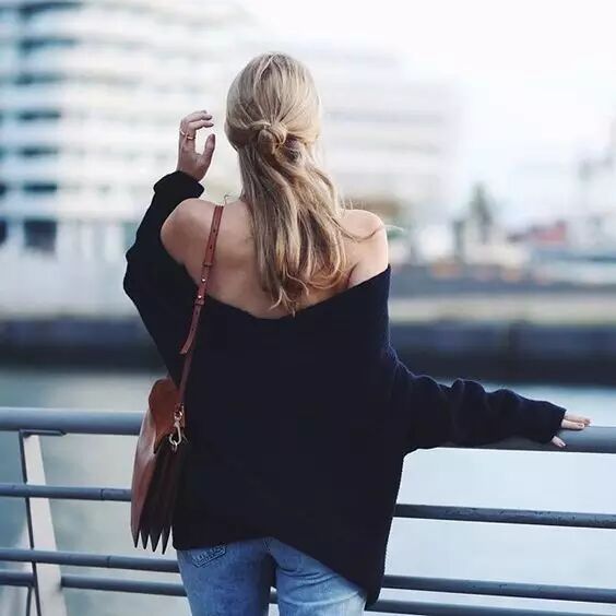 比起紧身的款式Eason更喜欢oversized的宽松版~非常随性自然,可以买一些大领口的针织衫,露出一半的肩膀也非常chic~▼