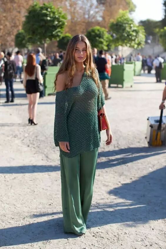 也可以选择一件oversize的针织开衫,前面几个扣子不要扣起来,拉大领口露出香肩~▼