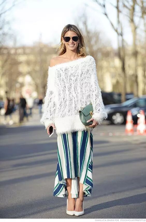 除了搭配裤子,长裙也是很不错的选择~看起来更加优雅和温柔噢!春风带起裙摆的感觉非常美妙~▼