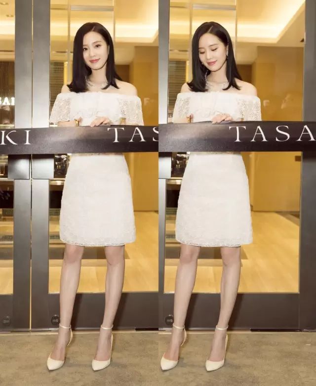 刘诗诗选择了刺绣小礼裙搭配一字带箭头高跟鞋