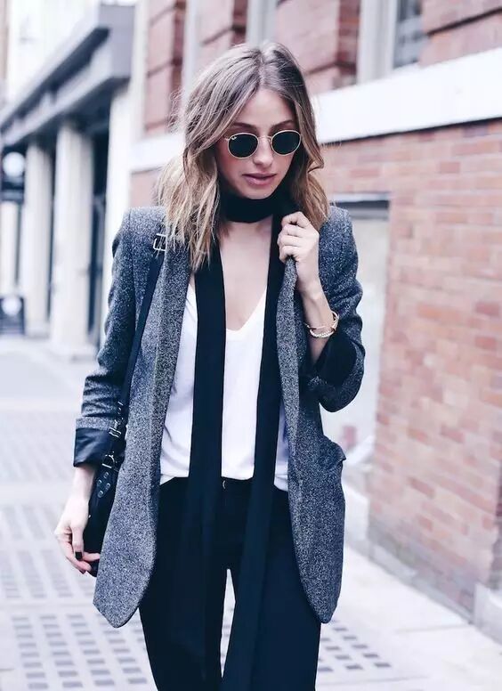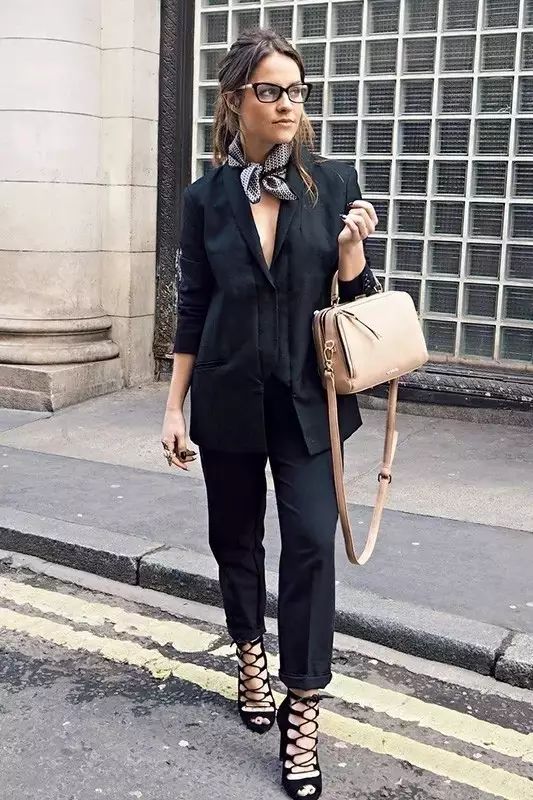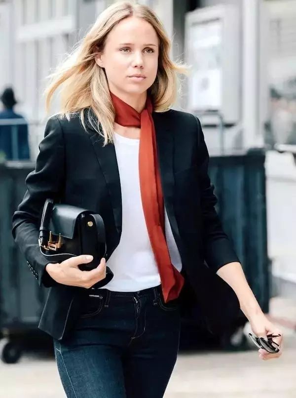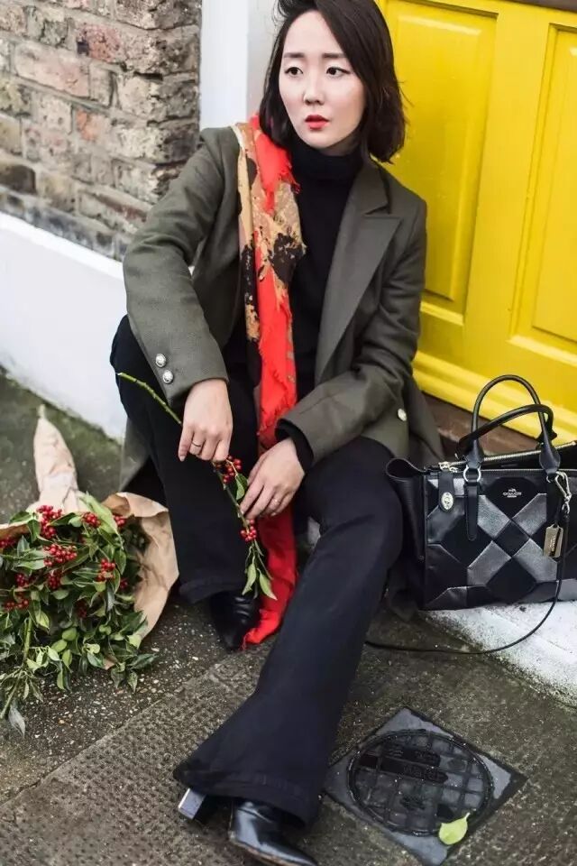 Eason很喜欢西装外套和丝巾的搭配,端庄又讲究,超级耐看啊~▼