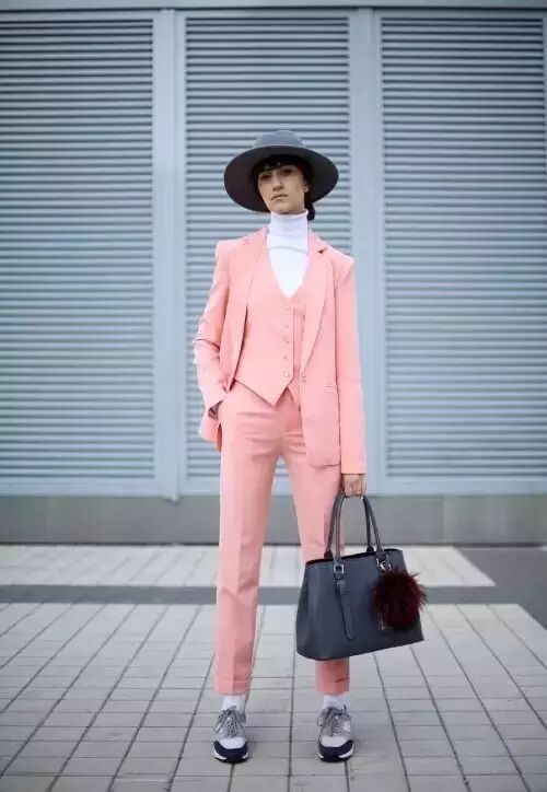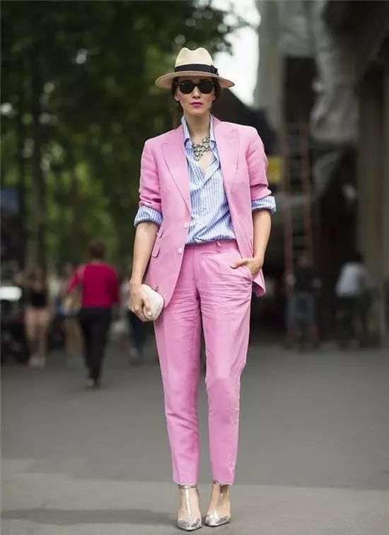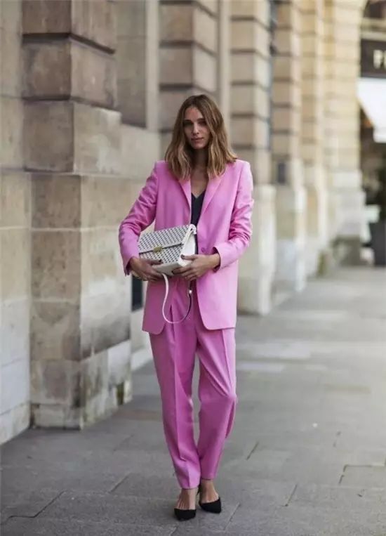 少女心爆棚的粉色,超级抢眼的粉紫色西服套装都很美~▼