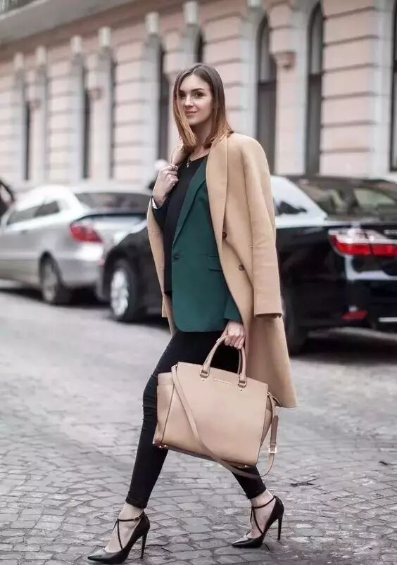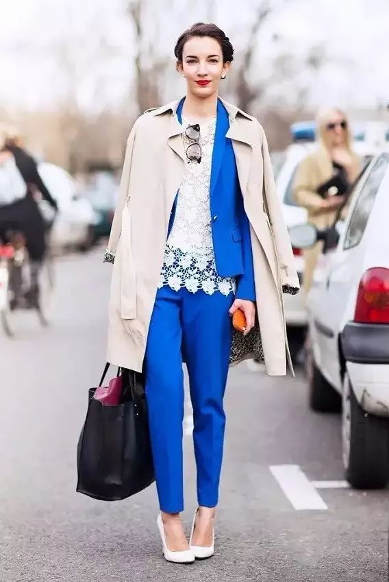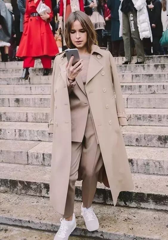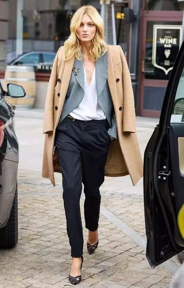 不过现在不少北方地区的气温还是比较低,这时候选择大衣和西装的叠加组合就很合适啦,小西装穿在里面到了室内脱掉依然也很干练有型。▼