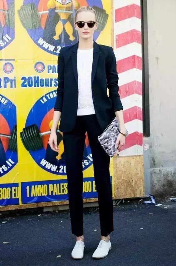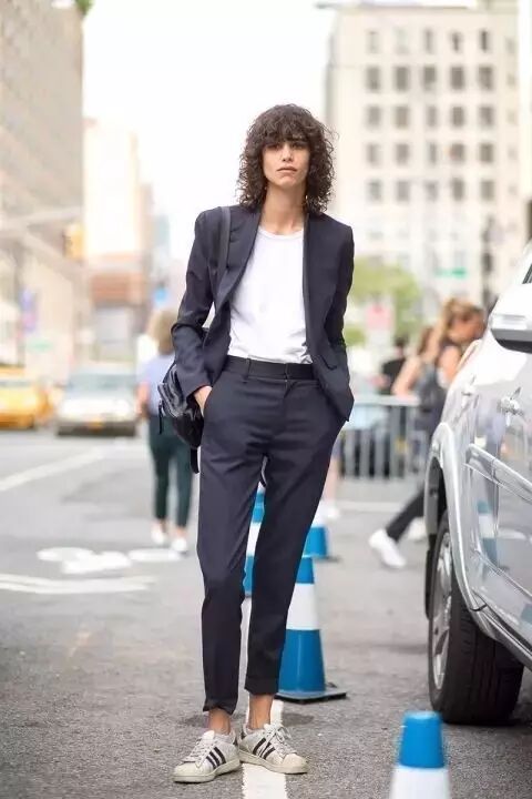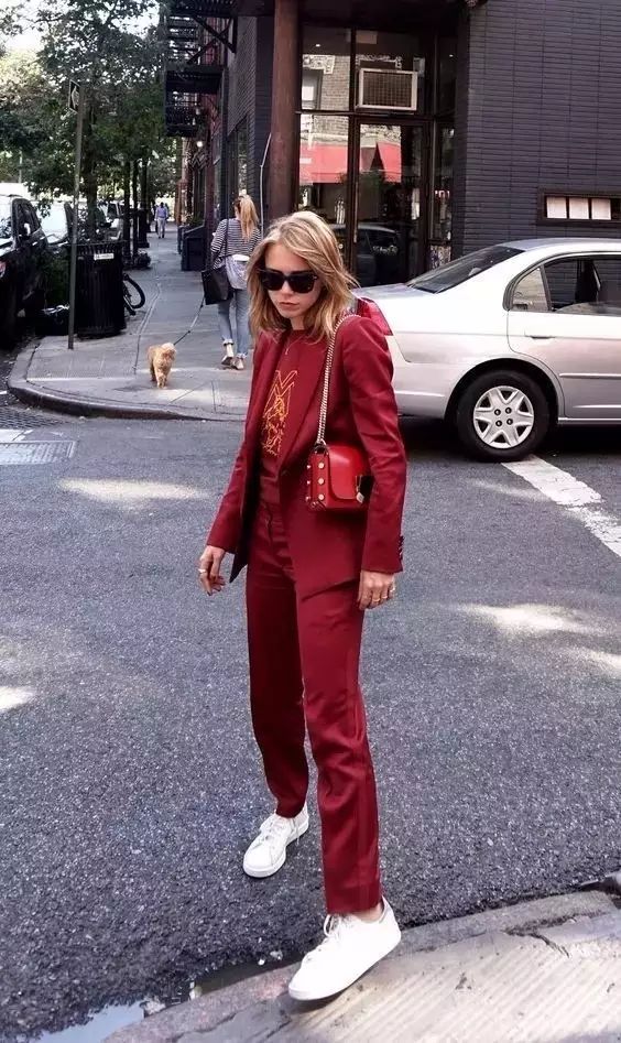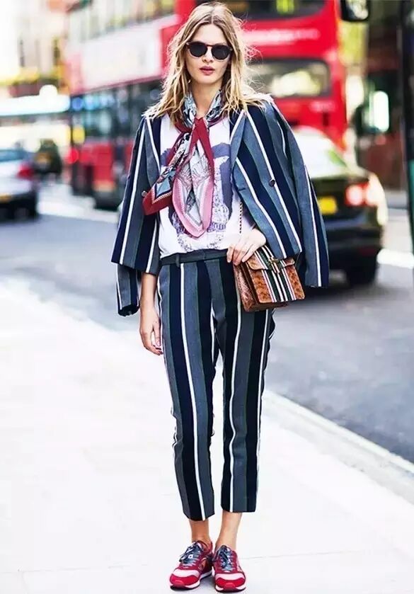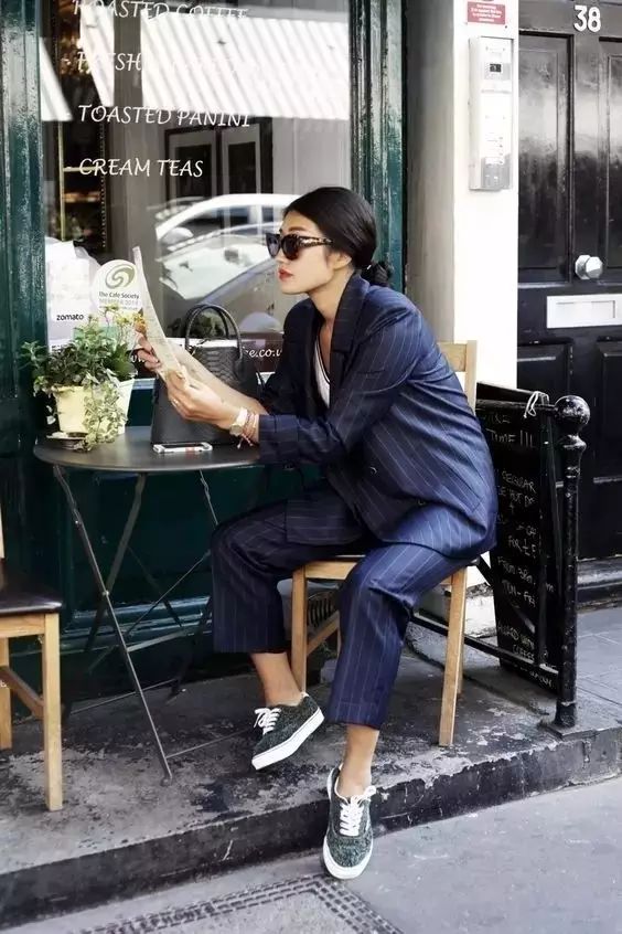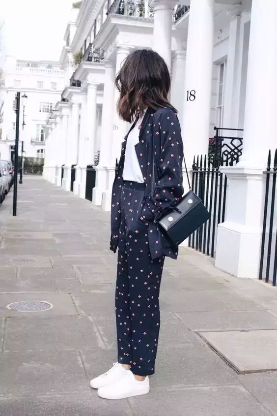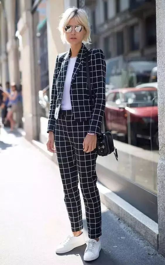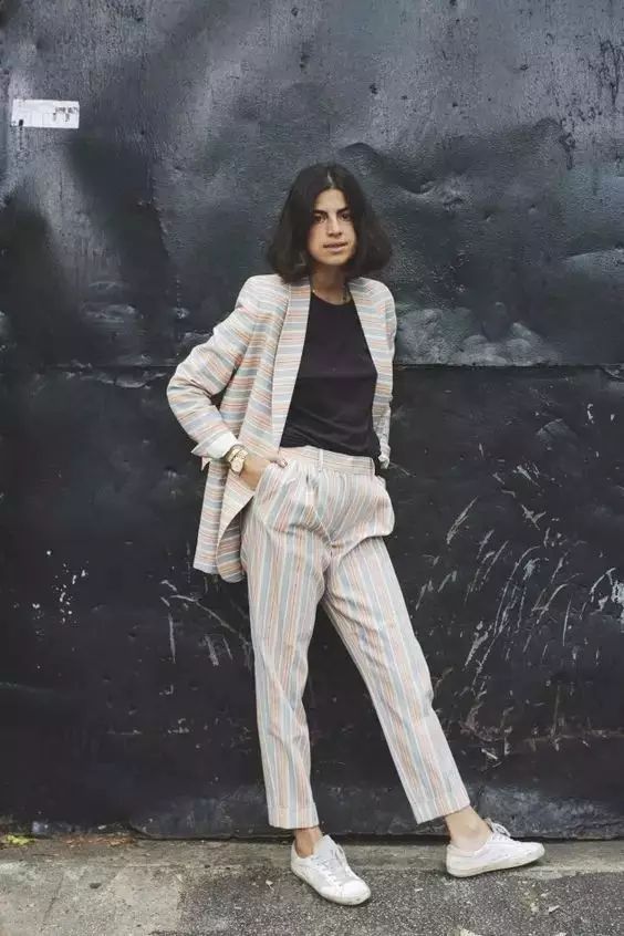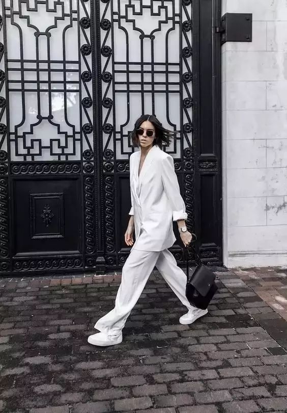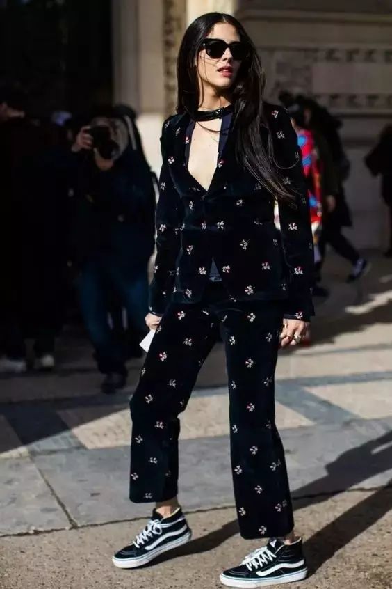 刺绣、印花、格纹、或条纹的西服套装都超级拉风,穿上运动鞋搭配活力十足。▼
