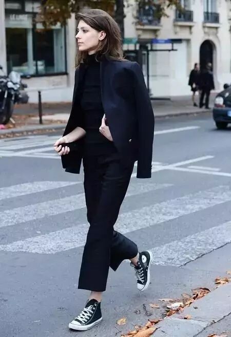 black,西服加入的荷叶边元素和内搭低胸Tee,让整个造型酷炫有型又不失女人味。▼