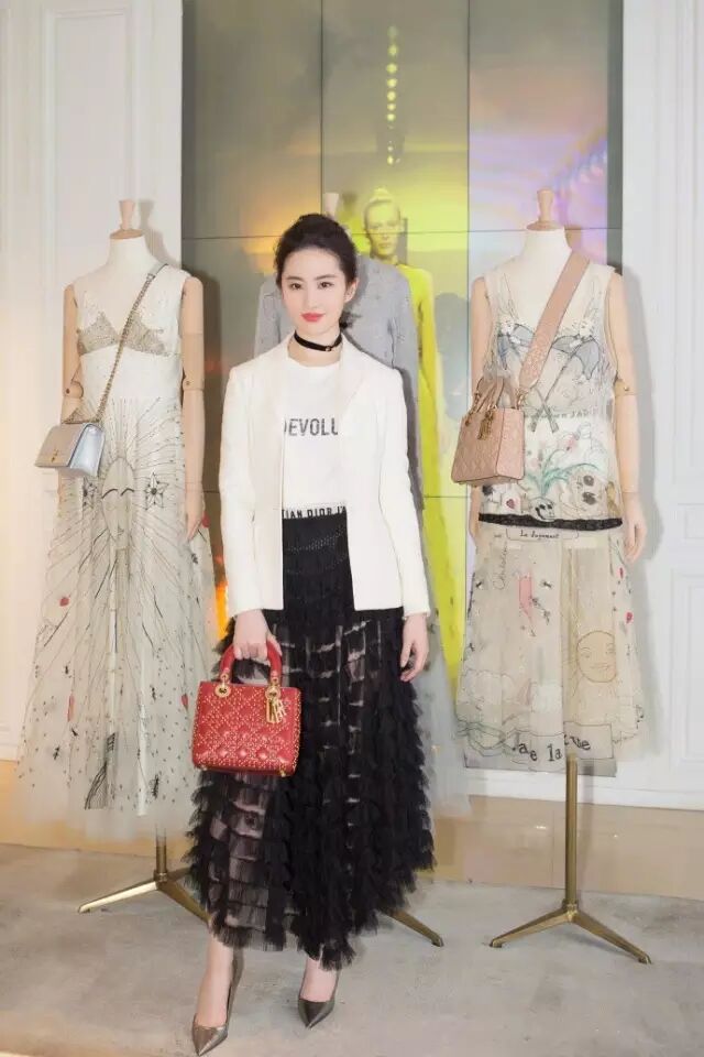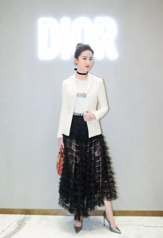 近日出席活动的神仙姐姐刘亦菲身穿白色西装外套搭配白T和黑色纱裙,用硬朗碰撞柔美,美得很独特。▼